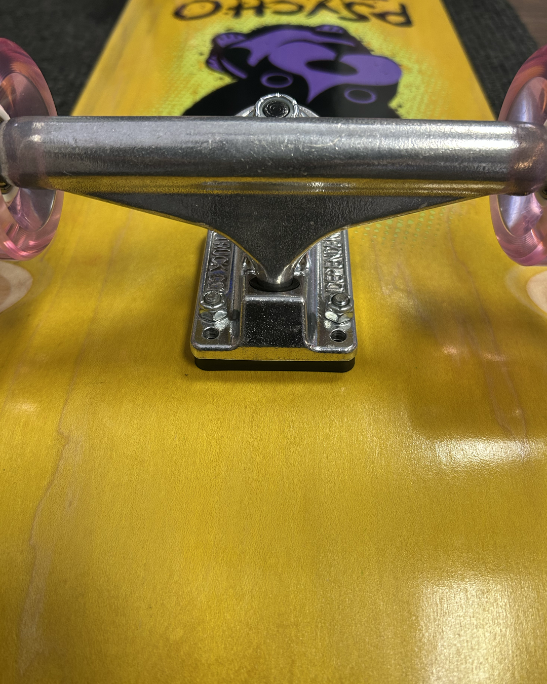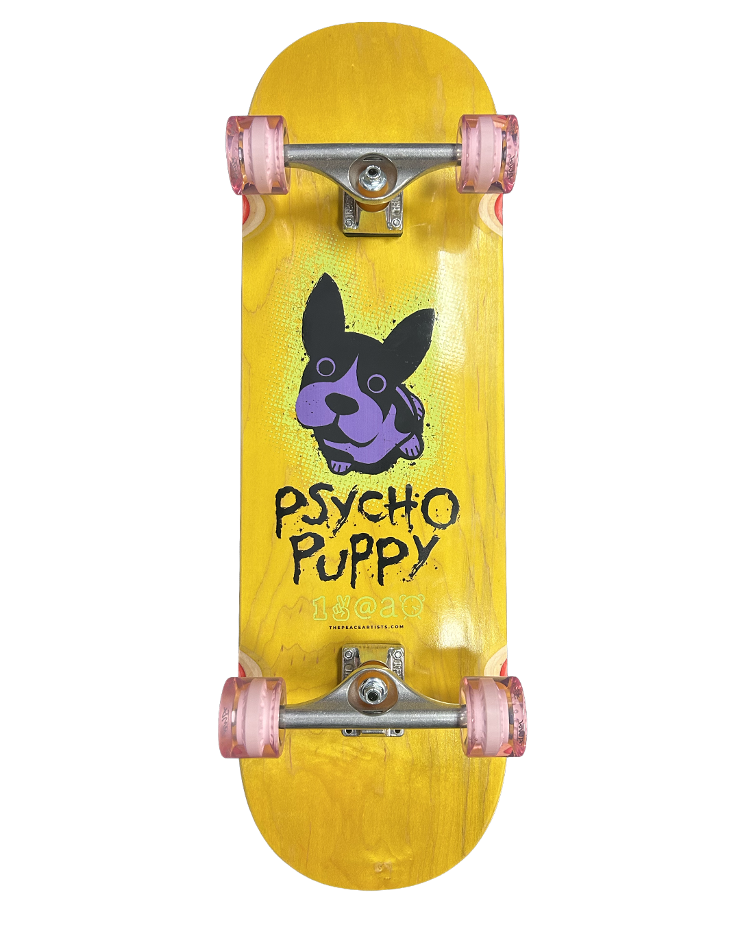 The Peace Artists Psyco Puppy 9.5"- Yellow Stain - Complete Skateboard